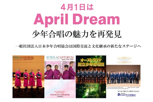 少年合唱の魅力を再発見 - 一般社団法人日本少年合唱協会は国際交流と文化継承の新たなステージへ。このプレスリリースは4月1日のApril Dreamで将来叶えたい夢を発表します。