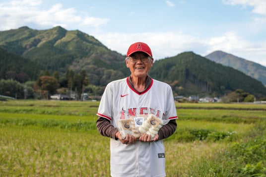 新庄村の元村長・笹野寛氏が約10年前から新庄村特産のもち米「ヒメノモチ」の化学肥料や農薬を使わない有機栽培に挑戦。日本一安心でおいしいお餅「ひめのもち」の生産に家族で取り組む。