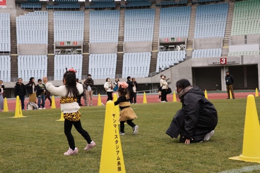 開催場所はヤンマースタジアム長居。スタジアムを活用し、天然芝生でのプログラムと、トラック付近や屋内を利用したミニゲーム6種を提供しました。
