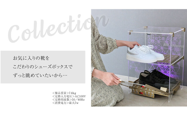 「和」を意識したデザインで、お気に入りの靴をインテリアの一部に。庫内の空気を除菌&消臭する機能も搭載