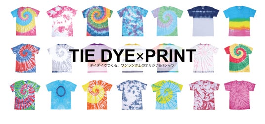 タイダイ染めとは、Tie(縛る)とDye(染める)で生地を染める手法のことで、縛り方や染料の塗り方によって様々な模様を表現することができます。職人が1枚ずつていねいに染め上げたタイダイ染めTシャツでセルフプリントをお楽しみください。