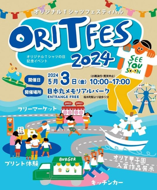一般社団法人日本オリジナルTシャツ協会(Japan Original T-shirts Association=JOTA 東京都渋谷区、代表理事:森 敬太郎)は、2024年5月3日(金・祝)10:00~17:00に横浜みなとみらい・日本丸メモリアルパークにて「オリジナルTシャツフェスティバル2024(通称:オリTフェス)」を開催します。全国の特別支援学校・特別支援学級の子どもたちが描いたアートTシャツの展示や、セルフプリント(プリント体験)を楽しめるオリジナルTシャツの祭典です。