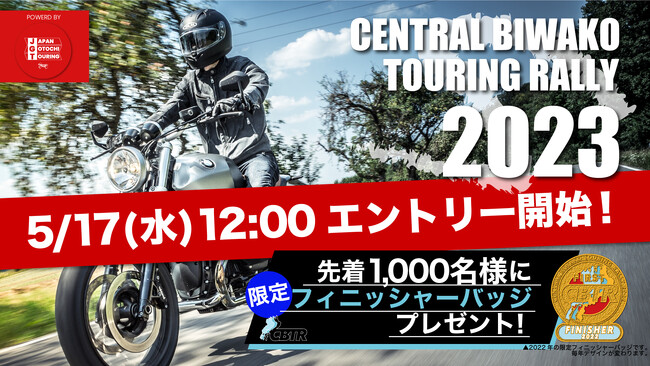 株式会社ご当地ツーリング(本社:神奈川県藤沢市、代表取締役:櫻井俊輔)は、滋賀県の琵琶湖をバイクで1周しながらデジタルスタンプを集めるバイクツーリングイベント「CBTR (Central Biwako Touring Rally)2023」の事前エントリーを、5/17(水)12:00よりCBTR公式サイト( https://cbtr.jp )にて開始いたします。