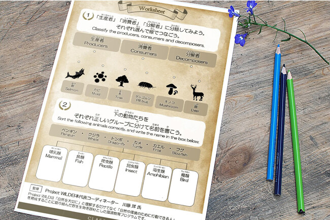 「CLASS EARTH」の製品1つ1つには生物多様性のワークシートが同梱され、ネイチャーポジティブに興味関心をもち学びにつなげるきっかけを提供します。また本売上の一部は日本自然保護協会をはじめとした自然保護団体に寄付を行ってまいります。