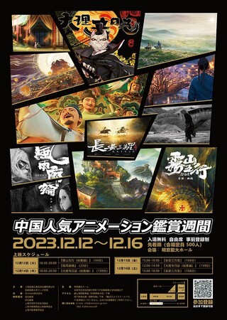 Animore株式会社(東京都武蔵野市)は上映会「中国人気アニメーション鑑賞週間」を共催として、2023年12月12日(火)~12月16日(土)の4日間開催しています。