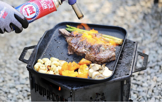 厚みと軽さと取っ手が取り外せること、油を塗って保管しなくていいこと、ガスコンロでも使えそうなこと、キャンプの朝、4人分の目玉焼きを焼きながら、真ん中でウインナーも焼いたりできそうです!