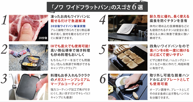 急速解凍機能付でクッキングシーンで大活躍すること間違いなしのワイドかつフラットの四角いフライパンが新登場