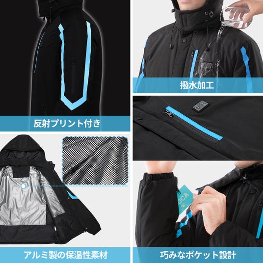 4.炭素繊維の強靭な高性能ヒーターを採用し、防風性、撥水性、耐摩耗性のほか、優れた伸縮性も備えている防寒ジャケット:https://www.amazon.co.jp/gp/product/B08GFL559R?th=1