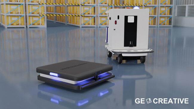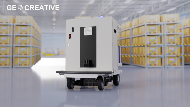 これまでコスト面や機能面で自動化が難しかった現場を自動化、DX化することができ、先に発表したリフトアップ式の超低床AMR『AMR-180』とともに、GEクリエイティブが掲げるコンセプト「導入しやすいAMR」のコアとなる製品です。