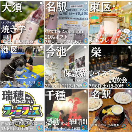 当アカウントは、名古屋市のイベント情報を広く告知するために運用を開始したアカウントで、掲載情報収集~投稿許可取り~投稿デザインまですべて、愛知淑徳大学の学生が実施しております。