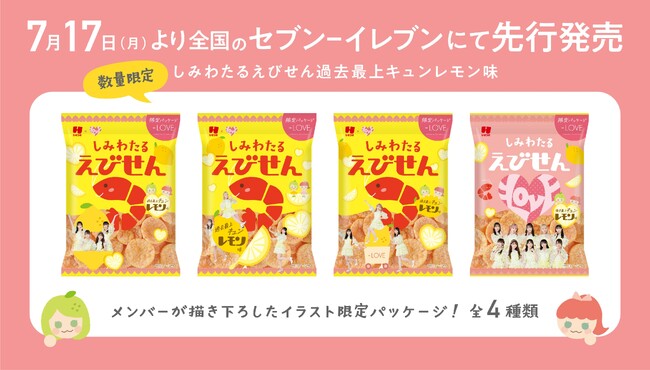 今年、創業100周年を迎えるひざつき製菓株式会社(本社:栃木県栃木市、代表取締役:膝附 武男、以下 ひざつき製菓)は、女性アイドルグループ『=LOVE』とのコラボレーションにより『しみわたるえびせん過去最上キュンレモン味』を商品化、2023年7月中旬より全国のセブン-イレブンにて数量限定で先行販売いたします。