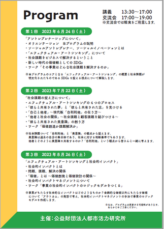 「エフェクチュアル・アートシンキング」という考え方をベースにソーシャル課題をビジネスで解決するアントレプレナーを育成するプログラムです。