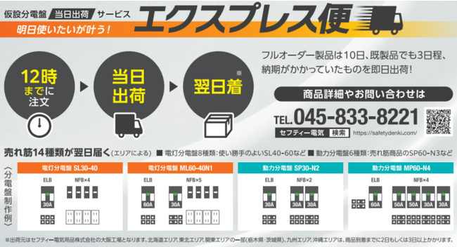 仮設分電盤の当日発送・翌日着サービス “明日使いたい”に応える「エクスプレス便」