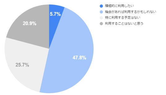「積極的に利用したい」と答えた人は5.7%、「機会があれば利用するかもしれない」と答えた人は47.8%だった。
