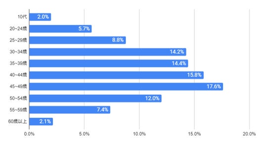 回答した人は男女比が同程度で、年齢は45歳~49歳が17.6%と一番多い。
