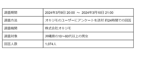 沖縄県庁の実証実験プロジェクトとして、「オキジモ(30万人ユーザー)」は沖縄県のドライバー1,074人を対象に「日本版ライドシェア」に関するWebアンケート調査を実施し、日本版ライドシェアに関する社会受容性を調査した。