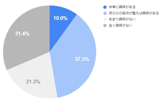 「非常に興味がある」と答えた人は10%、「何らかの条件が整えば興味がある」と答えた人は37.3%だった。