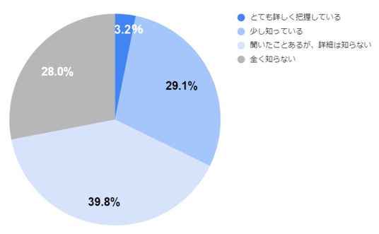 「とても詳しく把握している」という人はわずか3.2%だが、「少し知っている」「聞いたことはあるが、詳細は知らない」と答えた人も含めると72%の人が日本版ライドシェアについて認知していた。