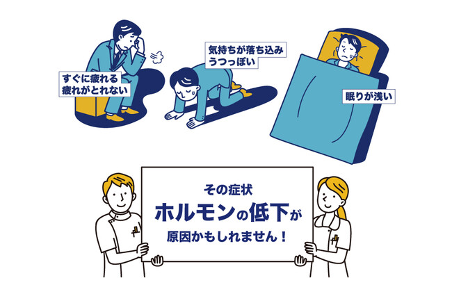 いつも憂鬱、強い不安感、イライラする、倦怠感がとれない、寝ているはずなのに眠い、肩こりがひどい、体重増加が気になる、顔が火照る、記憶力が落ちる、などの症状ありませんか?老化とあきらめていませんか?もしかしたらLOH症候群かもしれません。