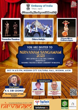 この度、愛知県日進市において、ヤヴァニカ・シアターズ主催による、日印文化カーニバル「ニラヴァーナム・サンガマム 2023」(Nirvanam Sangamam) を開催します。