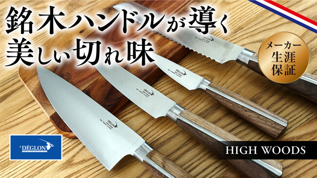 maccono(所在地:愛知県)は、応援購入サイトMakuakeにて「フランスDeglon社 銘木ハンドルのキッチンナイフ【HIGH WOODS】シリーズ」を2023年7月30日(日)までの選考販売を開始しました。