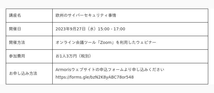 Armorisでは、国内外のセキュリティに知見を持つ講師により、サイバー攻撃が企業に及ぼすリスクについて、より役立つ情報提供を行っています。