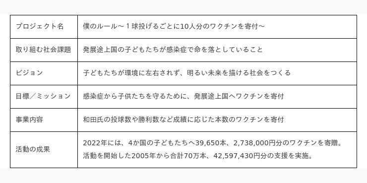 和田毅選手「僕のルール~1球投げるごとに10人分のワクチンを寄付~」