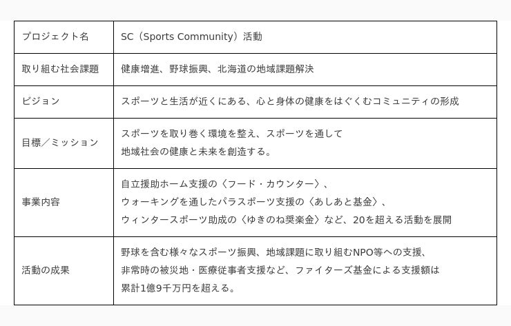 北海道日本ハムファイターズ「SC(Sports Community)活動」