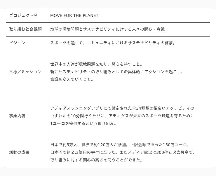 アディダス ジャパン株式会社「MOVE FOR THE PLANET」