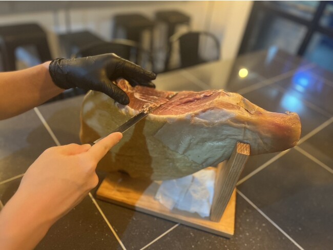 食べ放題となる生ハムは、贅沢に原木で用意され、自分でカットを楽しんでいただけます。