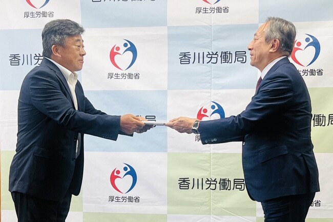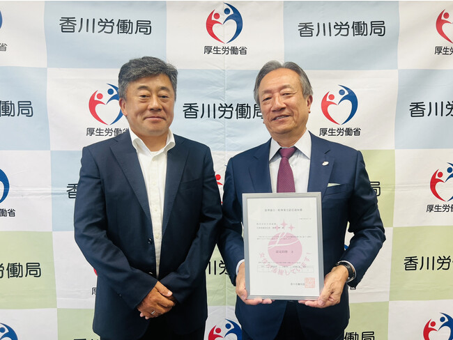 2023年8月28日、香川労働局にて認定証交付を受ける当社代表(写真右)