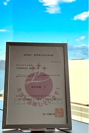株式会社日本総険(本社:香川県高松市/代表取締役 葛石智)が、女性活躍推進の取り組みが優良な企業として「えるぼし認定」の最高位である3つ星(3段階目)を取得いたしましたことを、下記のとおりお知らせいたします。香川県における3つ星のえるぼし認定は、2016年の1社目の認定以降当社で13社目となります。