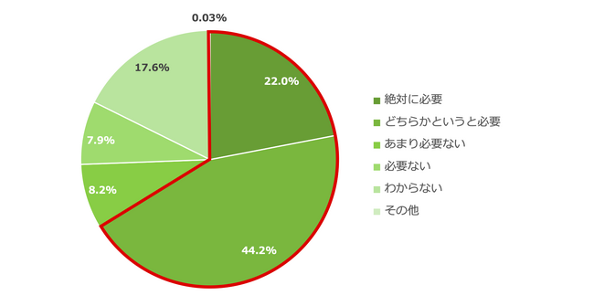 続いて、学校での投資・お金の教育は必要か否かを聞いたところ、「絶対に必要」「どちらかというと必要」を合わせた「投資・お金の教育は必要」と考えている方は66.2%にのぼりました。