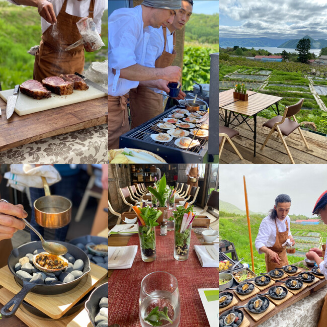 洞爺の大自然の中、農園や牧場など普段利用できない特別な場所で1日昼夜1組限定のシェフによるアウドドア・ケータリング・サービス。お食事の前後でさまざまなアウトドアのアクティビティ手配も可能です。