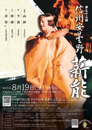 信州安曇野薪能実行委員会(事務局:安曇野市)では、8年ぶりに「信州安曇野薪能」を開催します。