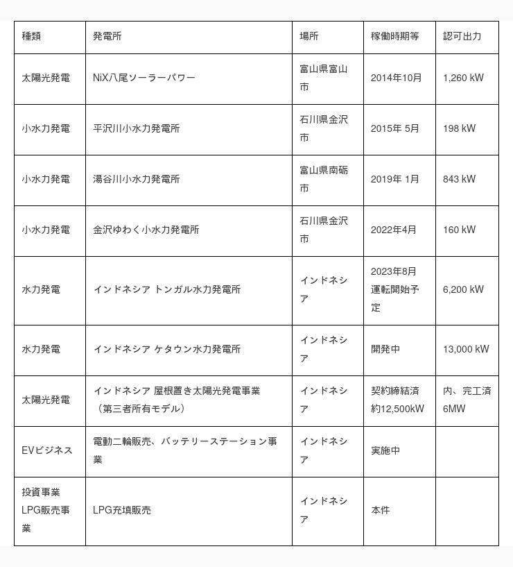 弊社グループは海外事業を成長エンジンの柱の一つとして、これまでインドネシアにて水力発電、太陽光発電、EVビジネスを推進してきましたが、長年の事業展開により、事業投資情報も増加しており、新たな成長の柱とするために、NiXグループ100%資本で、2023年1月にインドネシアを中心に事業投資及び投資アドバイザリー事業を行う現地法人として当社を設立しました。インドネシアの著しい経済成長を背景に、本LPG事業に続く投資パイプラインを多数保有しており、順次投資を実施していく計画です。
