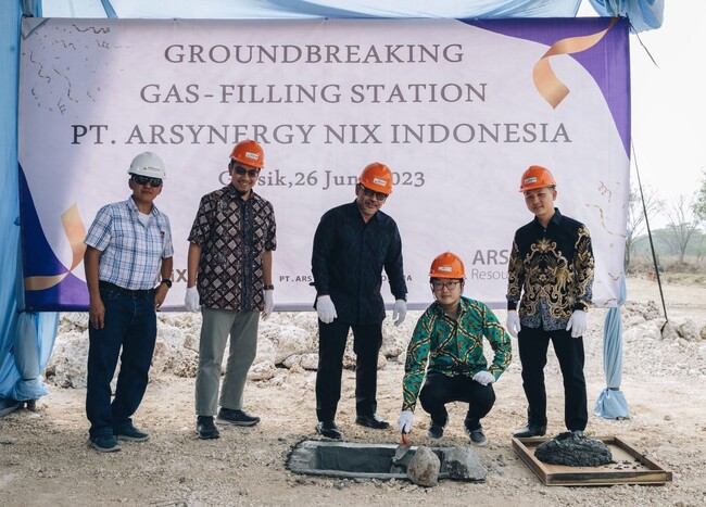 NiX JAPAN株式会社(富山市奥田新町、市森友明社長 / 旧社名︓新日本コンサルタント)を基幹事業とするNiXグループは、この度、グループ企業のインドネシア現地法人であるPT. NiX Capital Indonesia(以下、NCI))を通じてインドネシアのLPGプラントを保有・運営するPT. Arsynergy Resources (以下、ARSR)とインドネシアで新たにJV企業PT. Arsynergy NiX Indonesia(以下、ANI) を2023年3月に共同で設立し、LPG(プロパンガス)の販売を行う事業をインドネシアにて開始しました。また、事業を展開する上で東ジャワ州スラバヤのグレシック工業団地に新たなガス充填施設の建設を開始し、6月26日に地鎮祭を執り行いました。