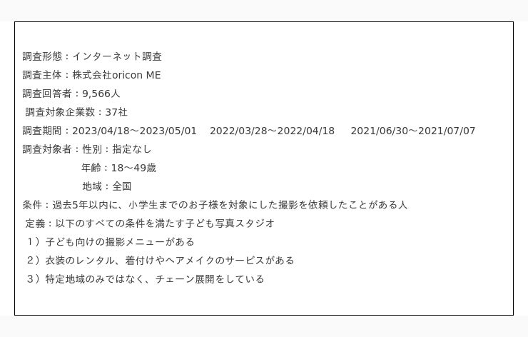 2023年 オリコン顧客満足度調査 子ども写真スタジオ 調査概要