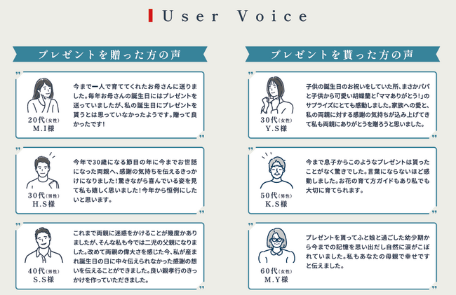 誕生日は“ありがとう”を贈ろう。をスローガンに、自分自身の誕生日は「お祝いされる日」だけでなく、大切な人を想い、「感謝する日」でありたいとの願いが込められた、心温まる新しいサービスです。