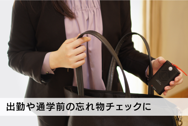 お出かけ前に忘れものや忘れ事が無いか、声かけで教えてくれるリマインダー。本体に録音して玄関ドアに掛けておけば、外出時に自動で音声が流れてお知らせしてくれます。