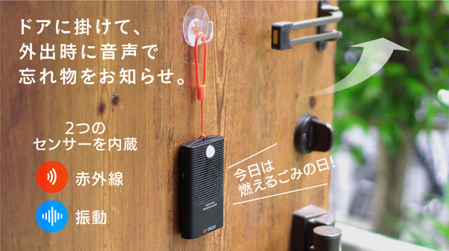 玄関のドアに設置して、お出かけ前の忘れ物を音声で教えてくれるリマインダー