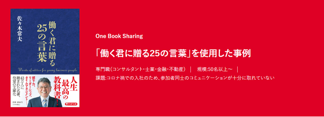 一進堂が提供している基本カテゴリーは8つ。1.コミュニケーション2.仕事に対するマインド3.新規事業・イノベーション4.メンタルヘルス5.女性活躍6.マネジメント・リーダーシップ7.人間力(リベラルアーツ)8.キャリアアップ。「1冊の本をみんなで読む」アクティブ・ブック・ダイアローグ(R)公認ファシリテーターが在籍しており、選書から研修、場づくりまで一貫して「本のプロ」の手を通して行われます。