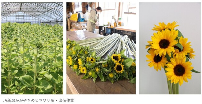 今回、新幹線でやってくるヒマワリの産地は「JA新潟かがやき」の黒埼地区。JA新潟かがやきの花は、大きさやつぼみの開き具合が出荷の箱ごとに揃えられており、生花店で取り扱いやすい=お客様にもご紹介しやすい形でやってきます。また、JA内で徹底して選別・荷造り方法を統一、新規栽培者に向けた研修会を開催して、切り花産地の担い手確保、選ばれる産地であり続ける取り組みをすすめています。