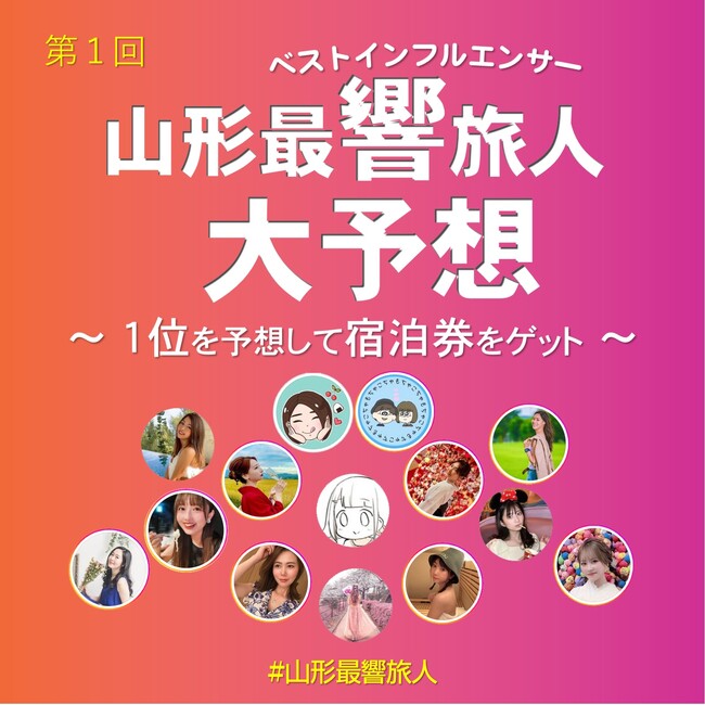 そこで、SNSを活用し、「山形に行ってみたい!」「この宿に泊まってみたい!」という気持ちにさせ、実際に足を運んでもらえるインフルエンサーを決めるべく「山形ベストインフルエンサー決定戦」を開催し、旅行需要の掘り起こしに繋げます。