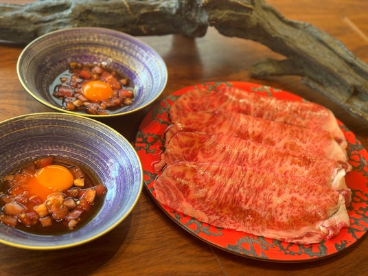焼いてお肉をすき焼き風で食べる焼肉屋の定番人気メニュー『焼すき』。贅沢にA5黒毛和牛サーロインを使用。当店ではさらにトマトを使用し、トマトの酸味と割り下の甘さが綺麗に調和させ、唯一無二の商品に仕上がっております。
