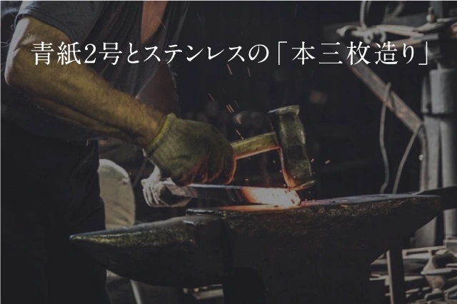 2.刃金にタフで切れ味が持続する安来鋼青紙2号を採用。地金に錆びにくくメンテナンスも楽なステンレス