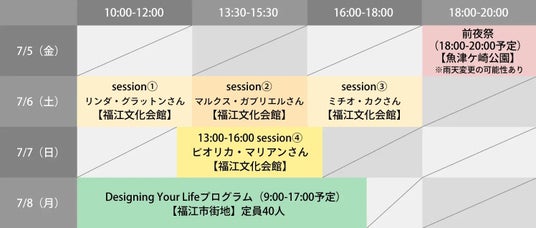 米国スタンフォード大学デザイン・プログラムのエグゼクティブ・ディレクター、ビル・バーネット、デイヴ・エヴァンスの2人によって開発された「Designing Your Life(デザイン・ユア・ライフ)公式ワークショップ」は、のべ15,000人以上が受講したスタンフォード大学の人気講座発のプログラム。 「五島、ひと夏の大学」では、この「Designing Your Life」を7月8日(月) 9:00~17:00に定員40名で実施します。