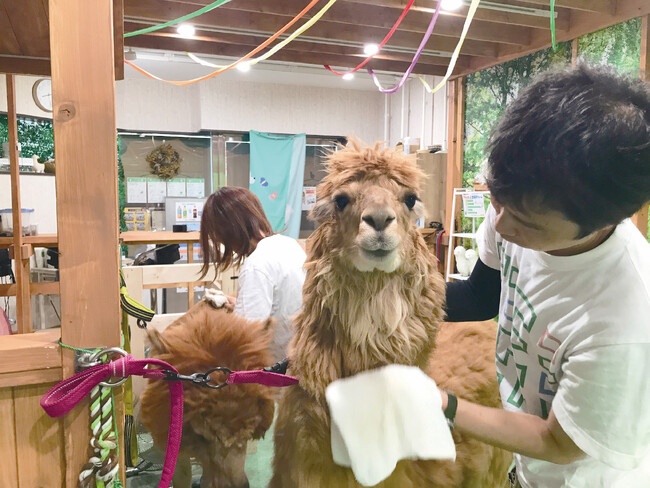 癒しの空間「都会のオアシス」をコンセプトとして2023年4月にオープンした「アルパカふれあいランド」は、柵の中に入って、直接アルパカに触れたり、餌をあげたりできる体験施設です。