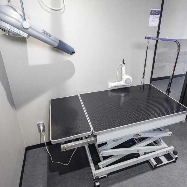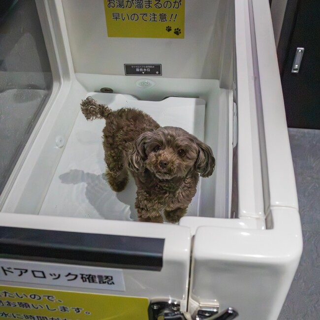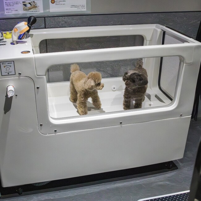 特許取得高度マイクロバブル式バスタブ・シャワー、大型ドライヤー、昇降式ドライヤー台などを完備しており、飼い主自ら愛犬を洗うことが可能です。また、事前予約制の無人型店舗のため飼い主様と愛犬だけのリラックスした空間をお過ごしいただけます。