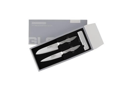 受け取る方を選ばない包丁と使い勝手「お祝いセット」の包丁はこのセットでのみの販売のため、GLOBALをはじめてお使いになる方だけでなく、GLOBALをすでにお持ちの方にも使い分けができ喜ばれます。また切れ味を簡単に回復させることができる便利なシャープナー付きのため、より長く快適な切れ味をお楽しみいただけます。